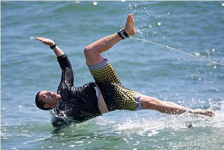 He was only trying to sit on his board. Still yet to actually catch a wave
